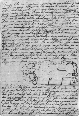 Schizzo autografo di Volta relativo allo sparo a distanza della pistola |